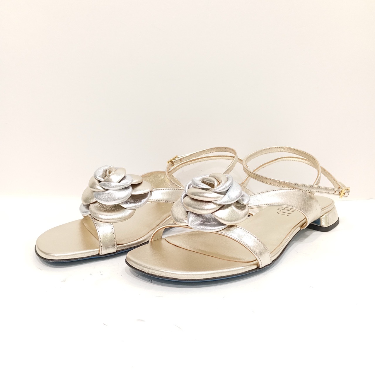 Босоножки из мягкой натуральной кожи. Цвет кожи серебряно- перламутровый.