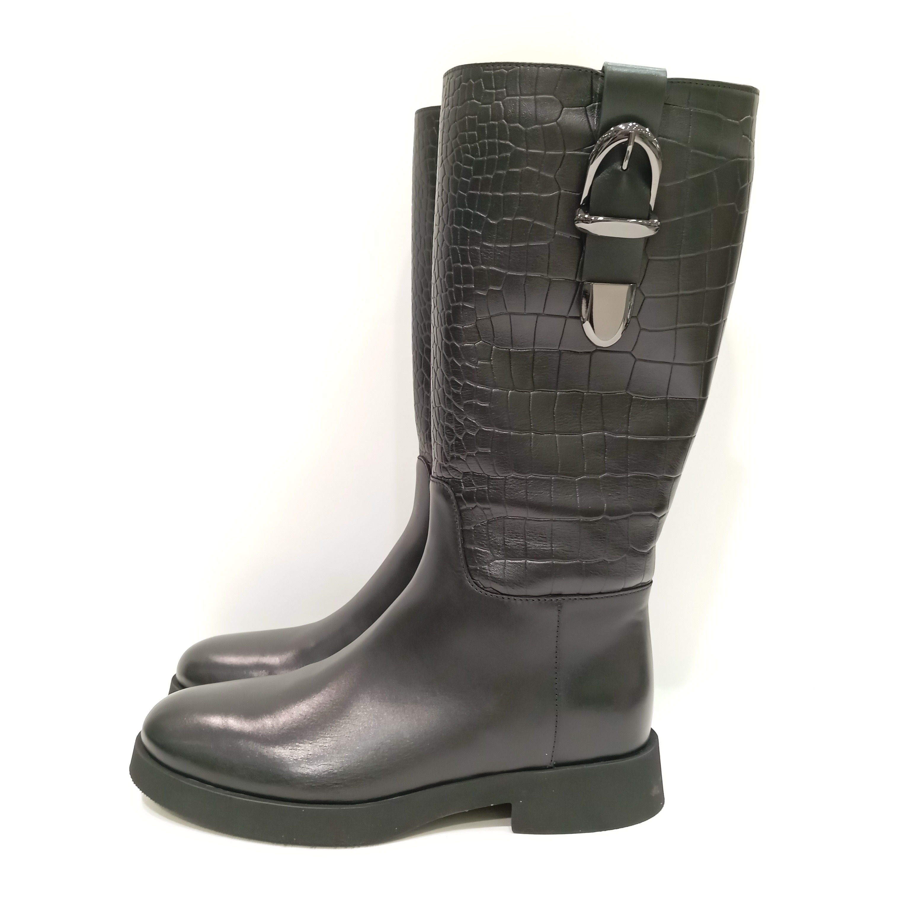 Стильные сапоги из натуральной кожи с подкладкой из натурального меха. Высота сапог 3/4. Подошва из полиуретана.