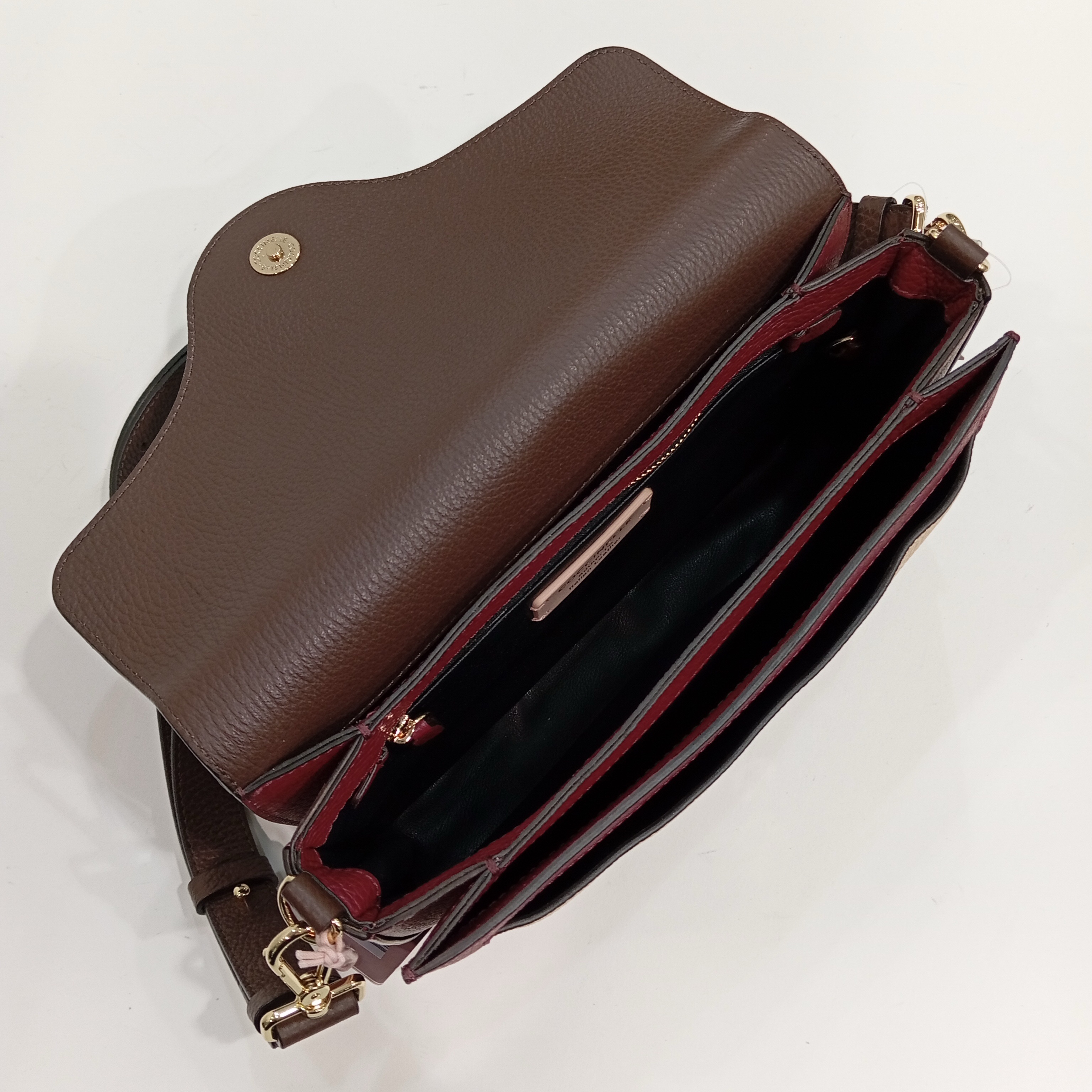 Сумка из натуральной кожи. Комбинирована из трех цветов кожи: коричневая, бордо и бежевая.