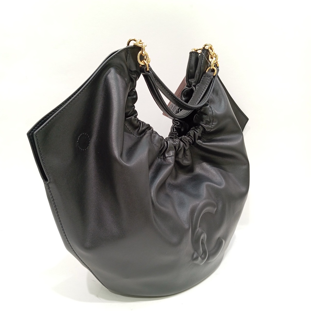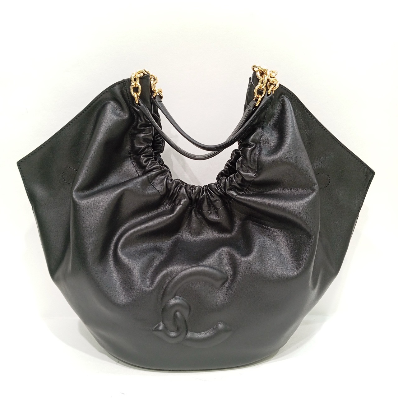 Стильная сумка от знаменитой итальянской марки Coccinelle. Сумка из мягкой натуральной кожи черного цвета. Две небольшие ручки крепленные на цепочках.