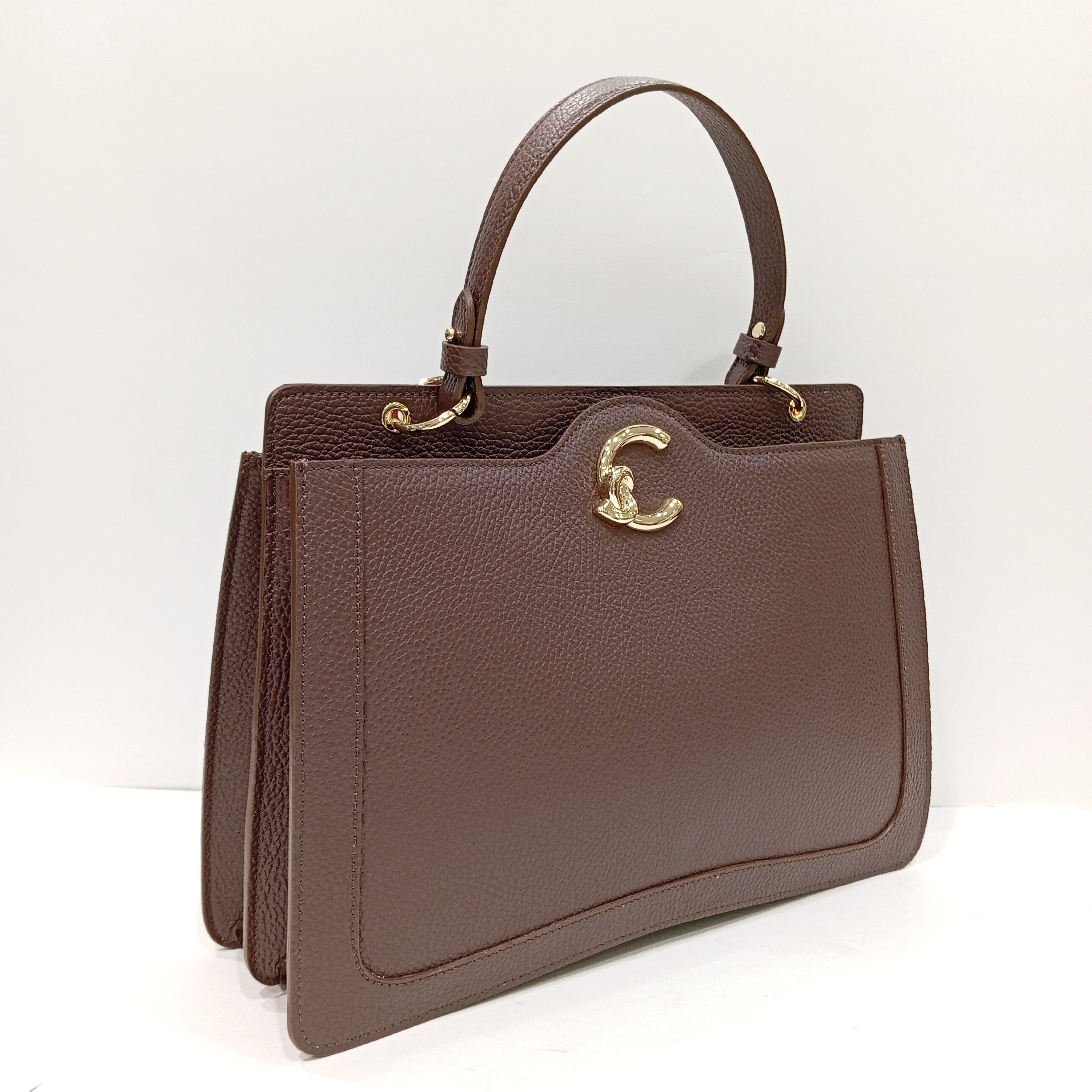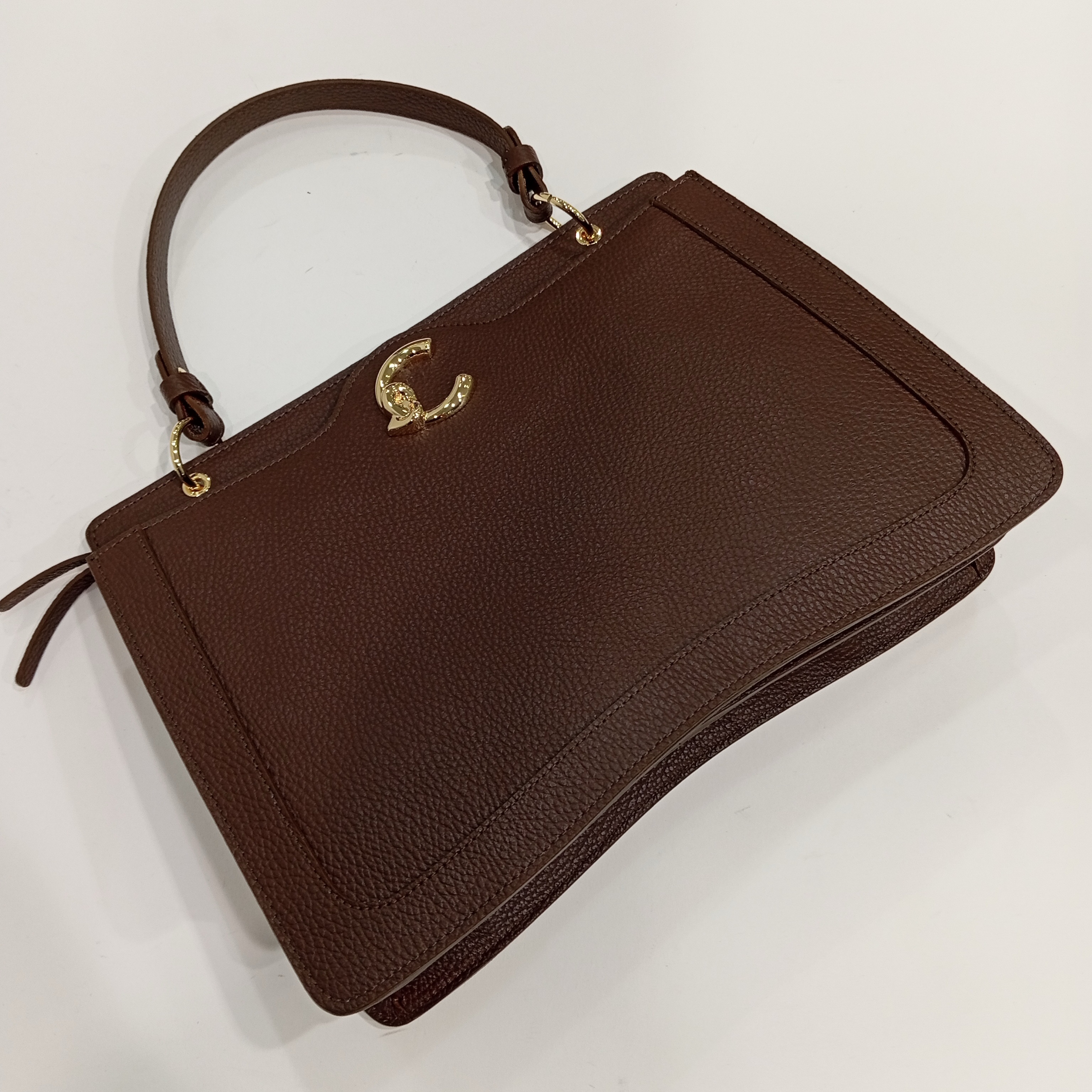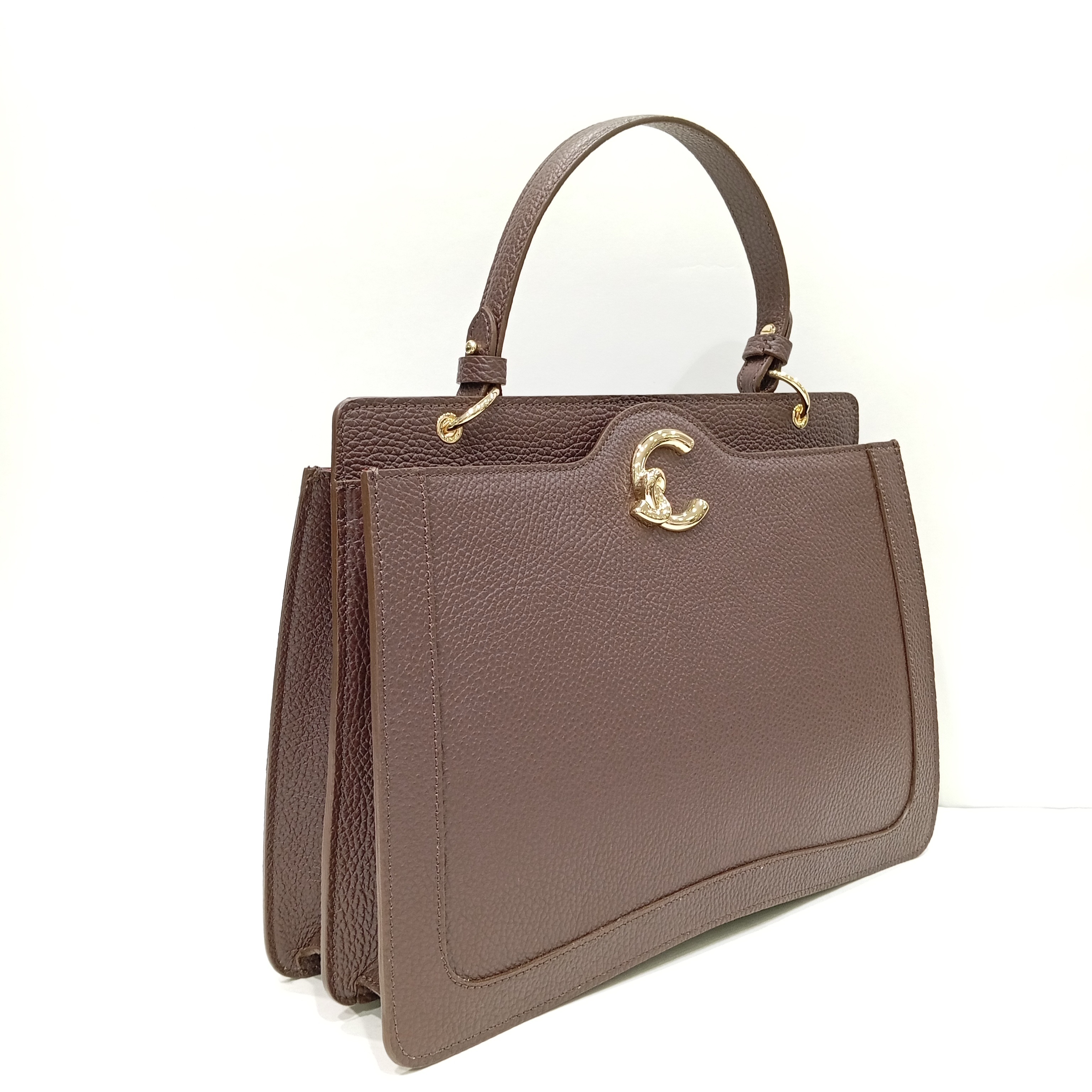 Сумка каркасная из мягкой натуральной кожи коричневого цвета.