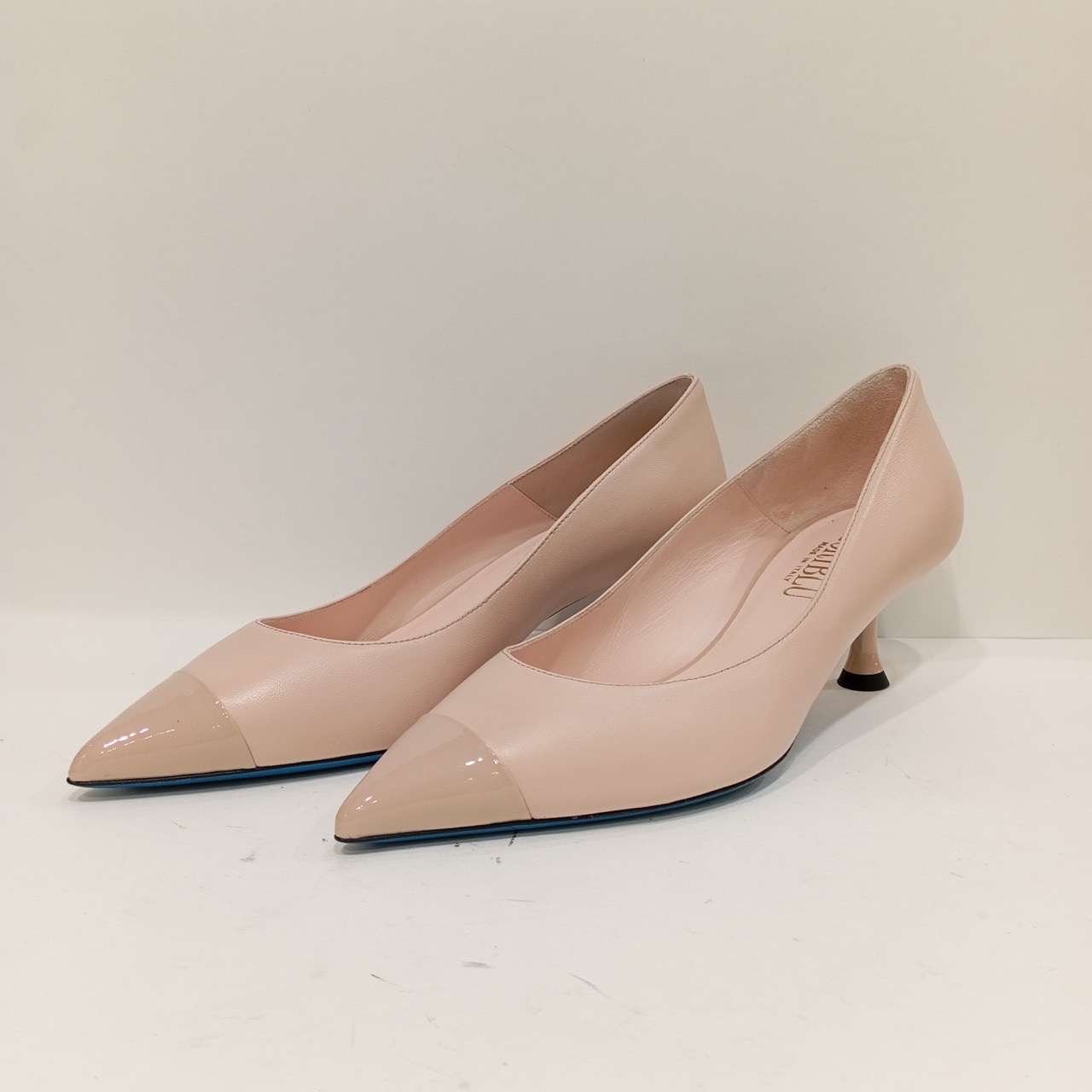 Туфли из натуральной кожи и лака. Подошва из натуральной кожи и каблук -5 см.